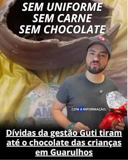 Mesmo diante de todos esses problemas, o ex-prefeito foi às redes sociais criticar a atual gestão pela não distribuição dos chocolates neste ano. Em sua publicação, chegou a exibir ovos de Páscoa vendidos por um supermercado, numa suposta tentativa de comparar os produtos com os itens distribuídos durante sua administração — que, como se sabe, foram alvo de diversas queixas pela qualidade e de auditorias por suspeitas de superfaturamento.